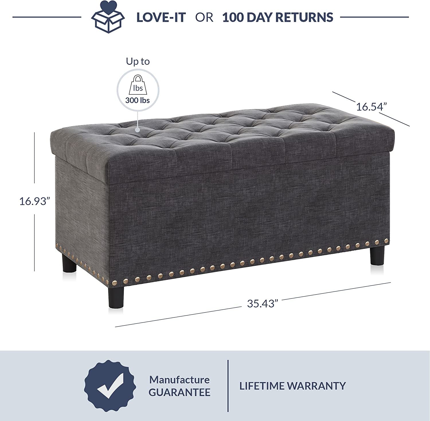 Ideal as a footstool, bench, or stylish storage solution, it complements any room while keeping clutter at bay. Dimensions: 35.43" W x 16.54" D x 16.93" H.