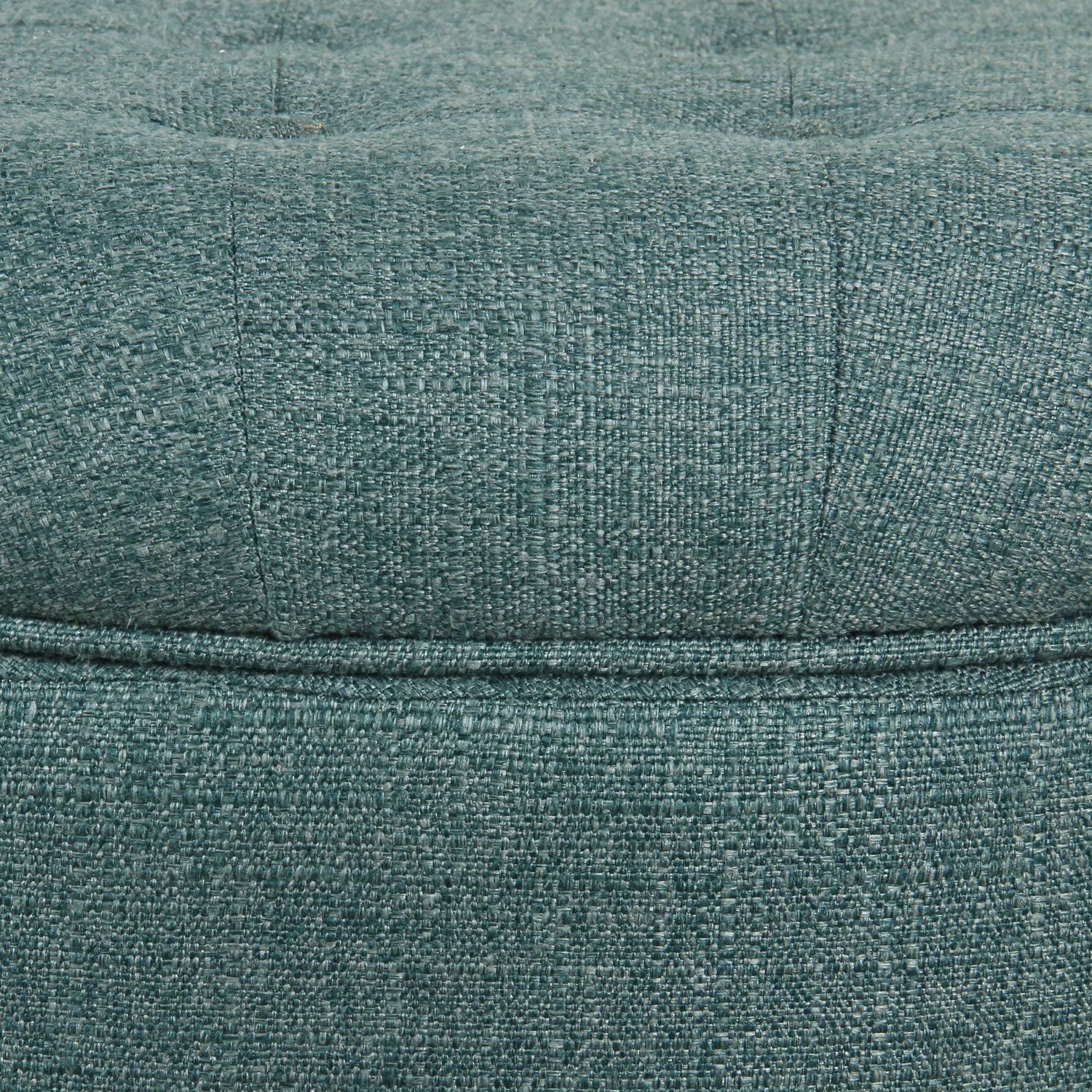 This elegant dark teal storage ottoman combines style and practicality with its lift-off lid and button-tufted design. Upholstered in soft, durable velvet with a textured weave, it adds a sophisticated touch to any room. Its sturdy wood legs support up to 250 lbs, making it perfect as a footrest or extra seating.