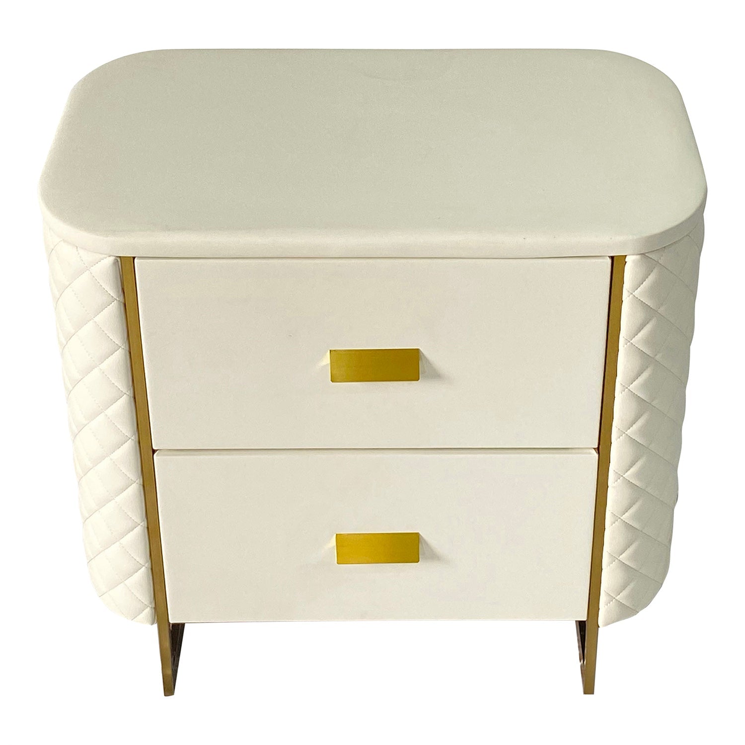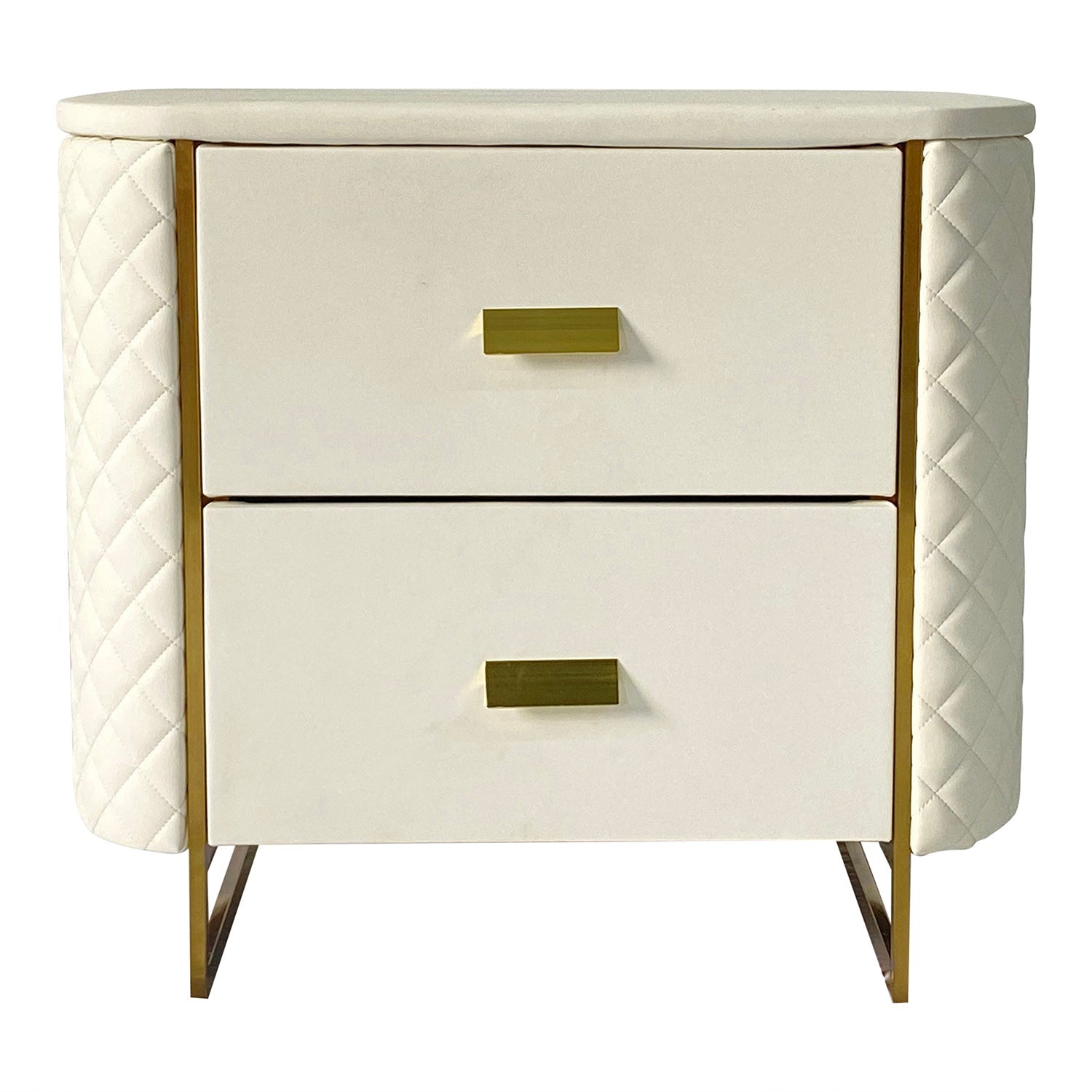 Though compact, end tables make a big impact in any room. Enhance your living room, office, or bedroom with this stylish White and Gold End Table. It boasts two spacious drawers and a sleek metal frame with a gleaming gold finish.